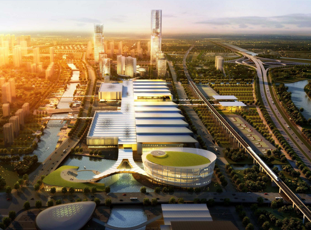 新國際會(huì)展中心集展覽、會(huì)議、商務(wù)、餐飲、酒店等多功能于一體,建成后將成為紹興城市標(biāo)志性建筑。