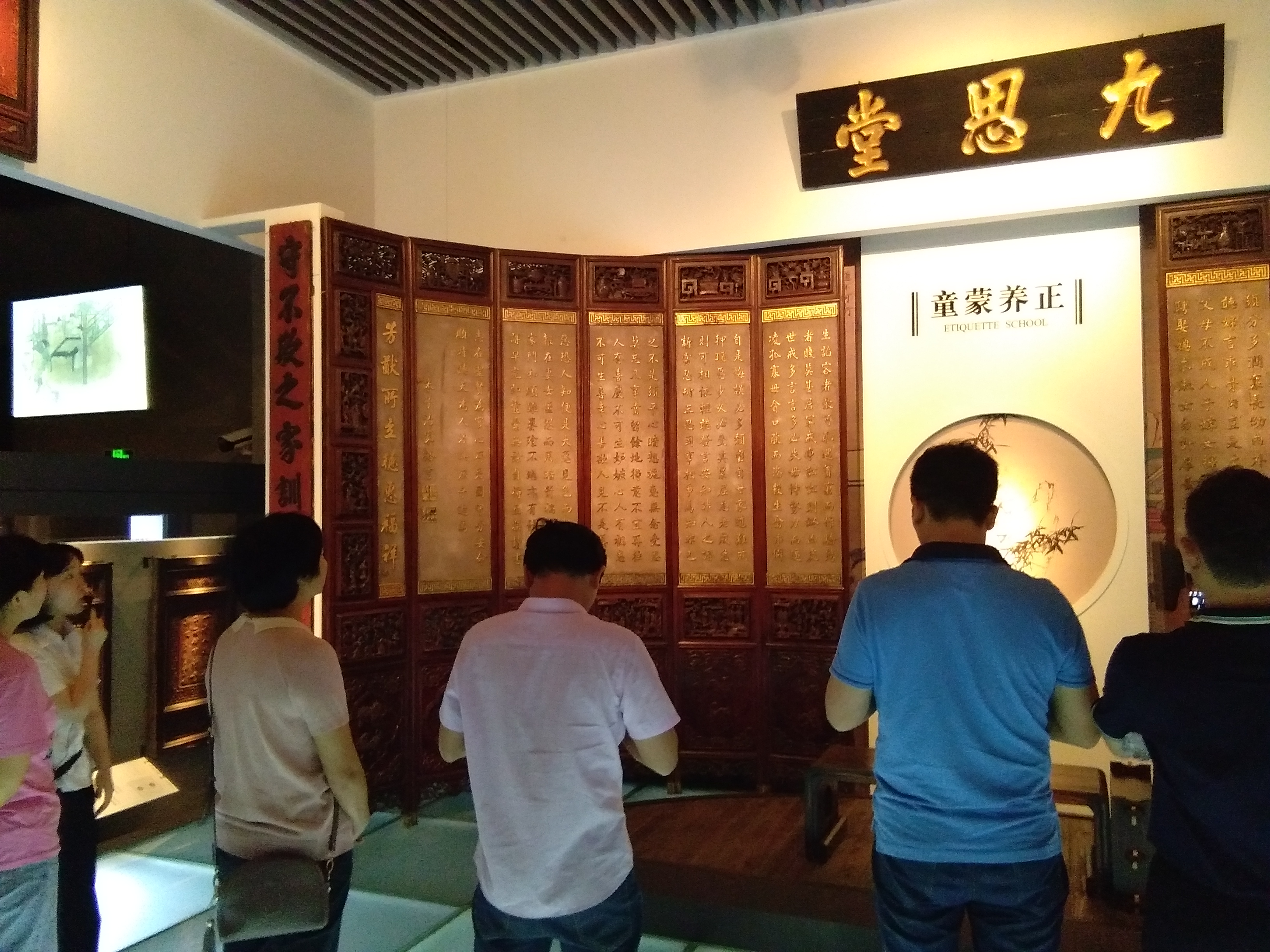 家訓(xùn)館以“小家訓(xùn),大規(guī)矩”為主題,以“修齊治家平天下”為核心,展出了全國各地350余件家訓(xùn)木刻雕板,內(nèi)容涉及孝、悌、忠、信、禮、義、廉、恥等方面,內(nèi)涵深刻,足以為明鑒,足以為警戒,對當下“學(xué)家訓(xùn)、立家規(guī)、樹家風”有著重要的范導(dǎo)意義。家訓(xùn)館中豐富的內(nèi)容和生動立體的展示形式,深深吸引了每一名黨員。