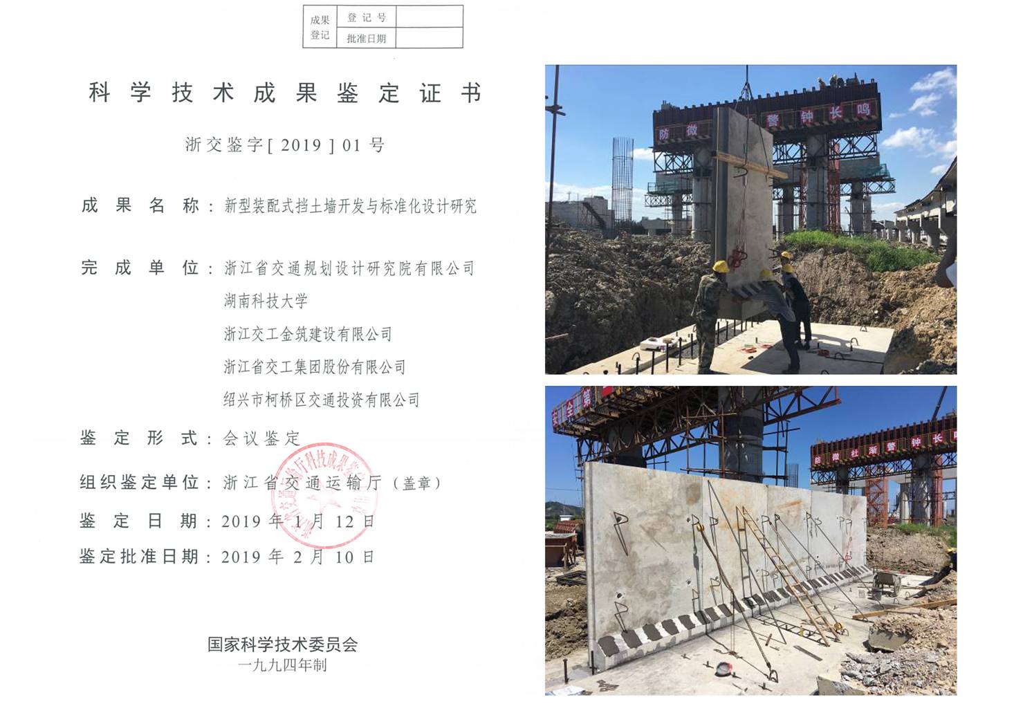 《新型裝配式擋土墻開發(fā)與標準化設(shè)計研究》課題通過省交通運輸廳鑒定