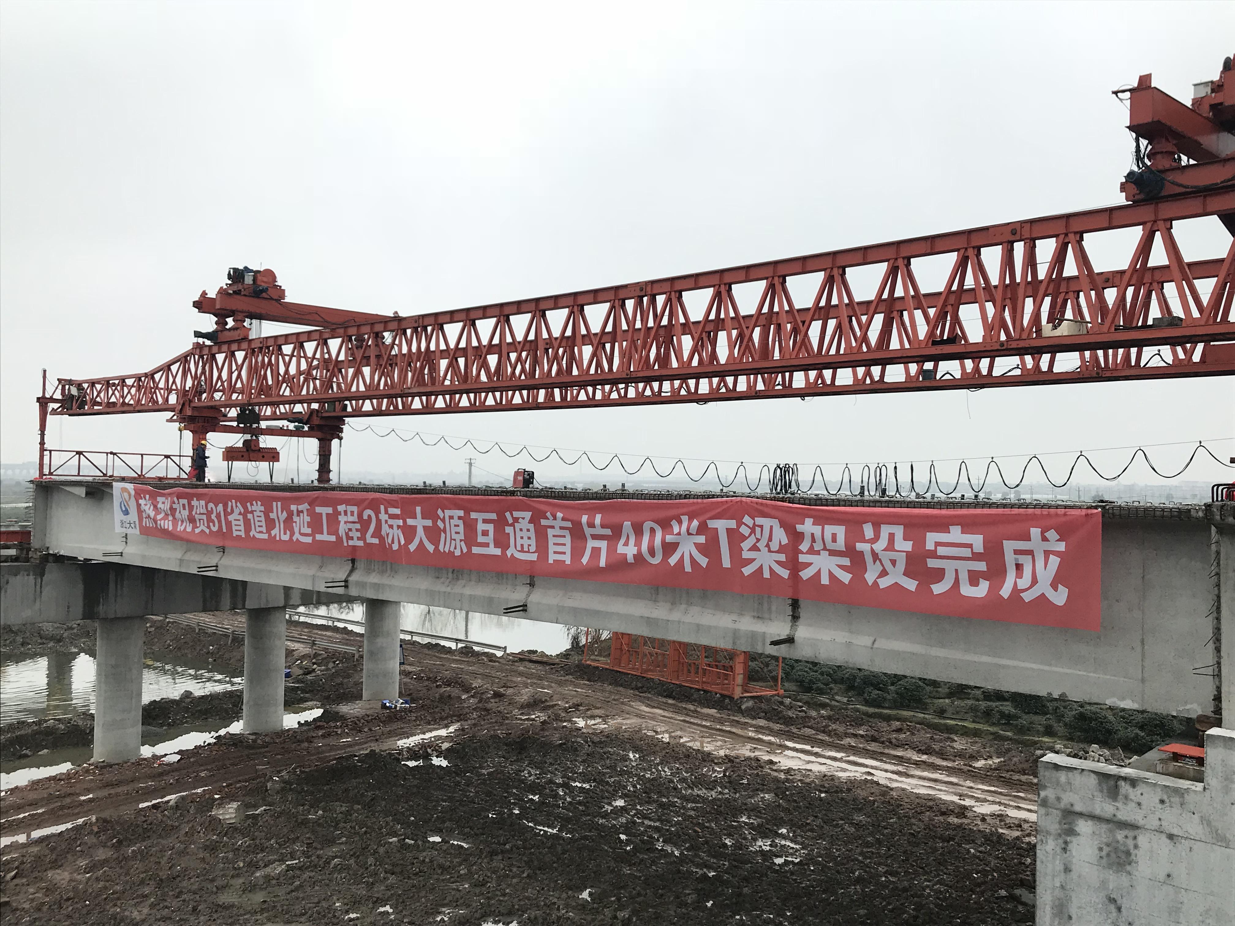 31省道北延工程大源互通主線橋首片40米T梁順利架設(shè)完成