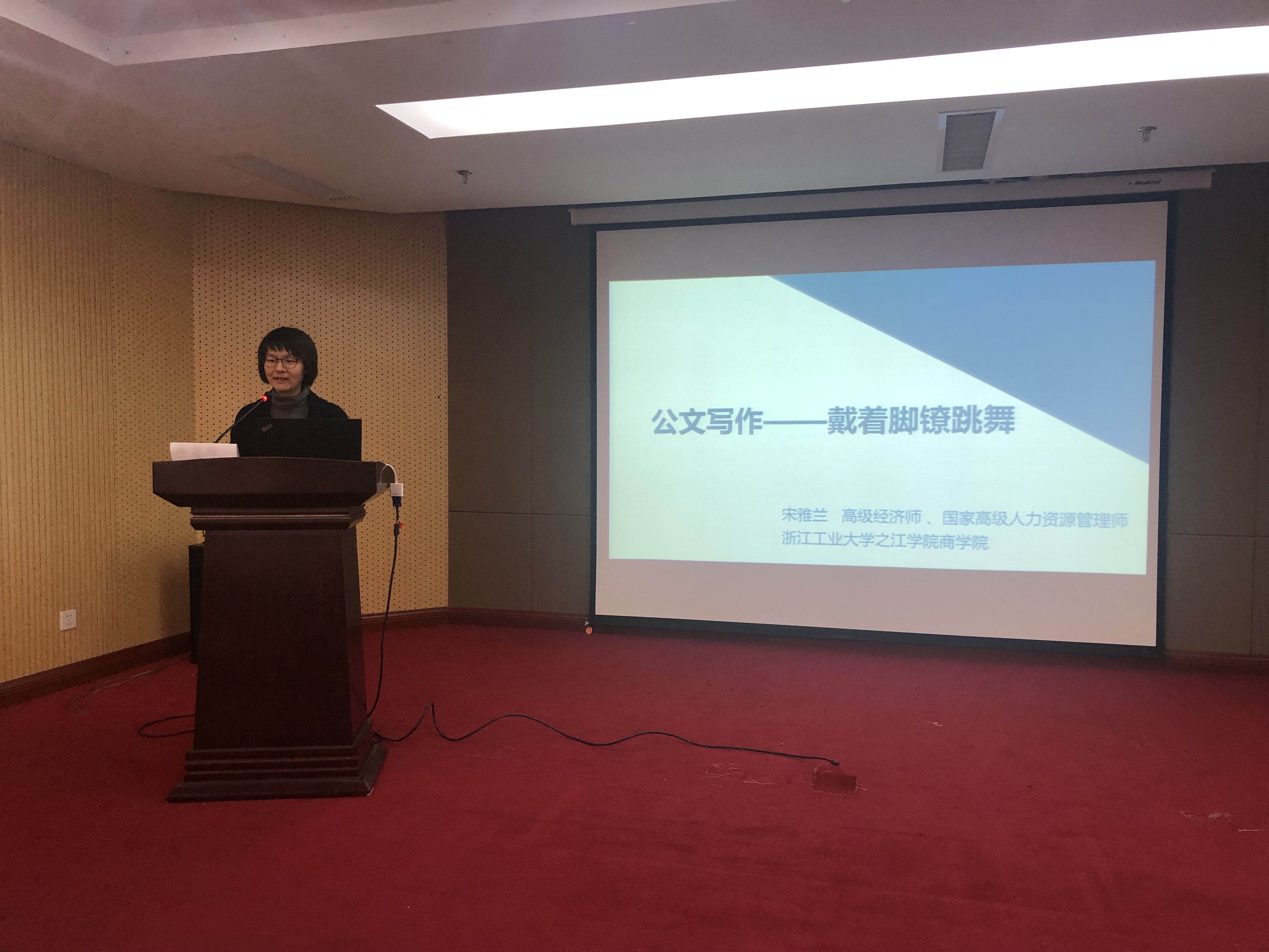 本次培訓,邀請浙江工業(yè)大學之江學院宋雅蘭老師進行授課。培訓課上,宋雅蘭老師向大家深入淺出的講述了公文寫作的基礎知識,詳細闡述了公文的規(guī)范格式,著重為大家講述了決定、通知、公告、報告、請示等公文的寫作方法,并逐個舉例說明,生動形象。通過培訓,大家收獲頗豐,對公文寫作有了全面認識和深刻理解,希望能把學到的知識用到工作中,增強公文規(guī)范意識,不斷提高公文寫作水平,以更好地完成本職工作。