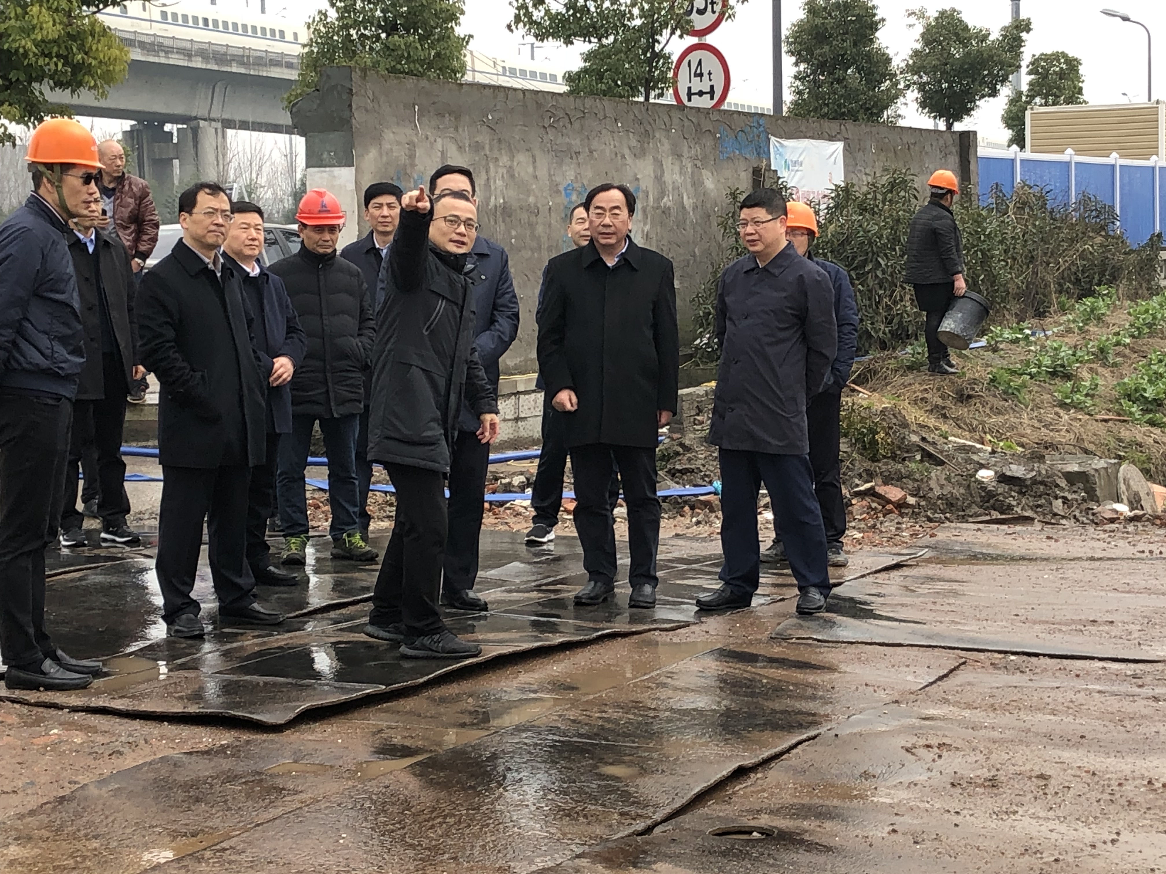 現(xiàn)場施工人員正在忙碌地進(jìn)行打樁作業(yè),場地內(nèi)數(shù)臺挖掘機(jī)正在場地平整和土方開挖,建筑渣土運(yùn)輸車輛進(jìn)出工地絡(luò)繹不絕,整個工地現(xiàn)場施工顯得既井然有序,又熱火朝天。馬書記和盛市長在現(xiàn)場就項目的建設(shè)情況等相關(guān)問題進(jìn)行了詢問,建設(shè)集團(tuán)副總經(jīng)理茹建冬對此作了詳細(xì)介紹和講解。馬書記和盛市長充分肯定了區(qū)委區(qū)政府和區(qū)建設(shè)集團(tuán)為加快推動項目建設(shè)所做的一系列工作,并要求建設(shè)各方再接再勵,科學(xué)組織,精心施工,搶進(jìn)度、抓質(zhì)量、保安全,力爭2019年9月份1#展廳能率先投入使用。