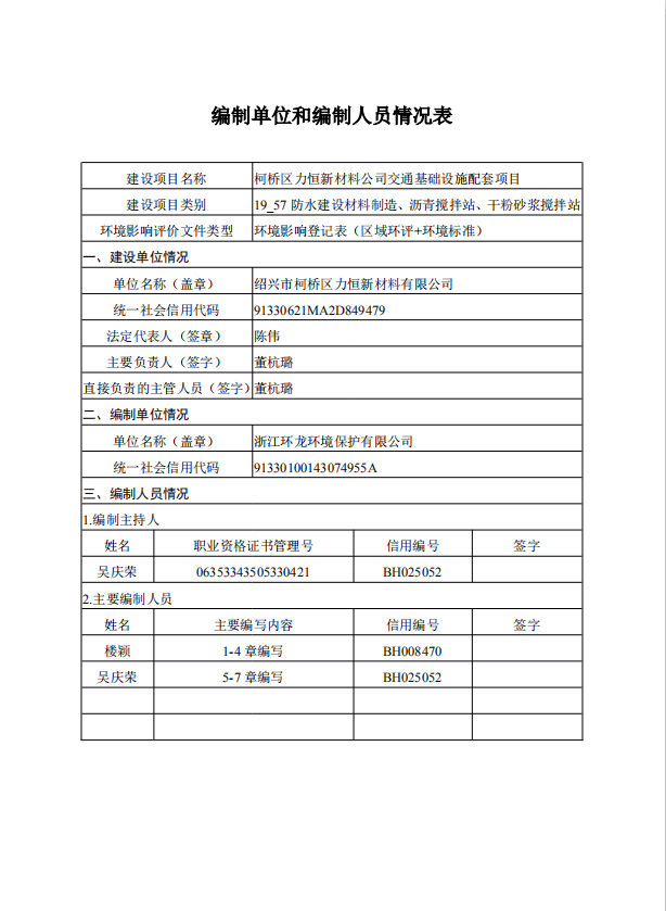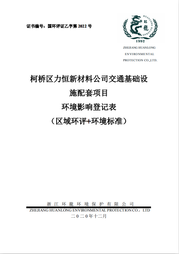 柯橋區(qū)力恒新材料公司交通基礎(chǔ)設(shè)施配套項目環(huán)境影響登記表(區(qū)域環(huán)評+環(huán)境標(biāo)準(zhǔn))