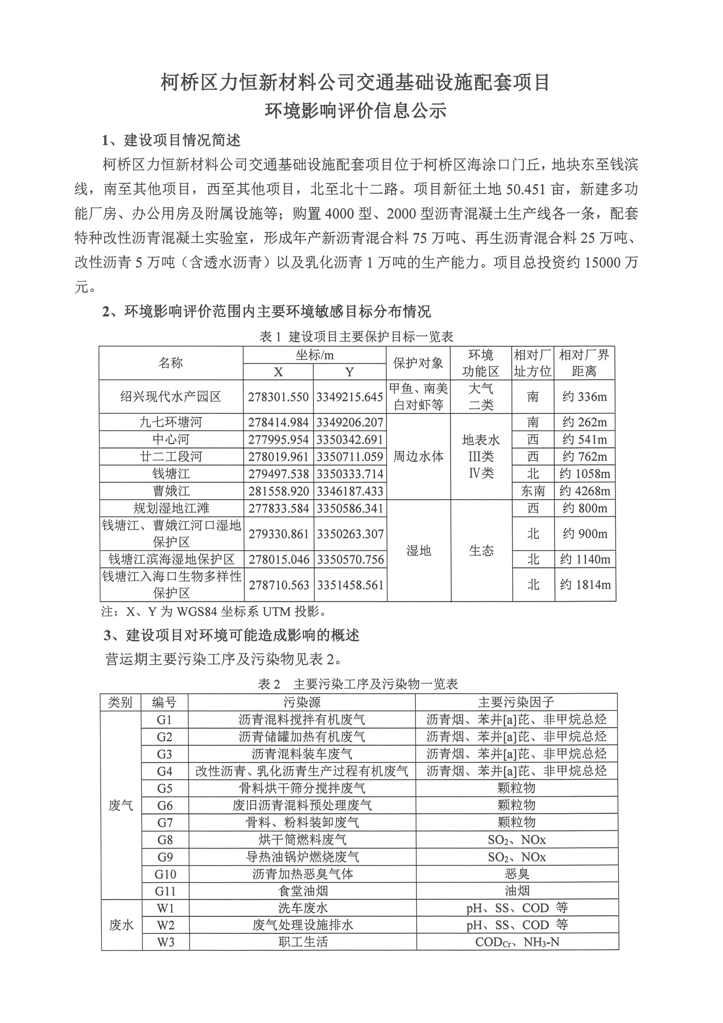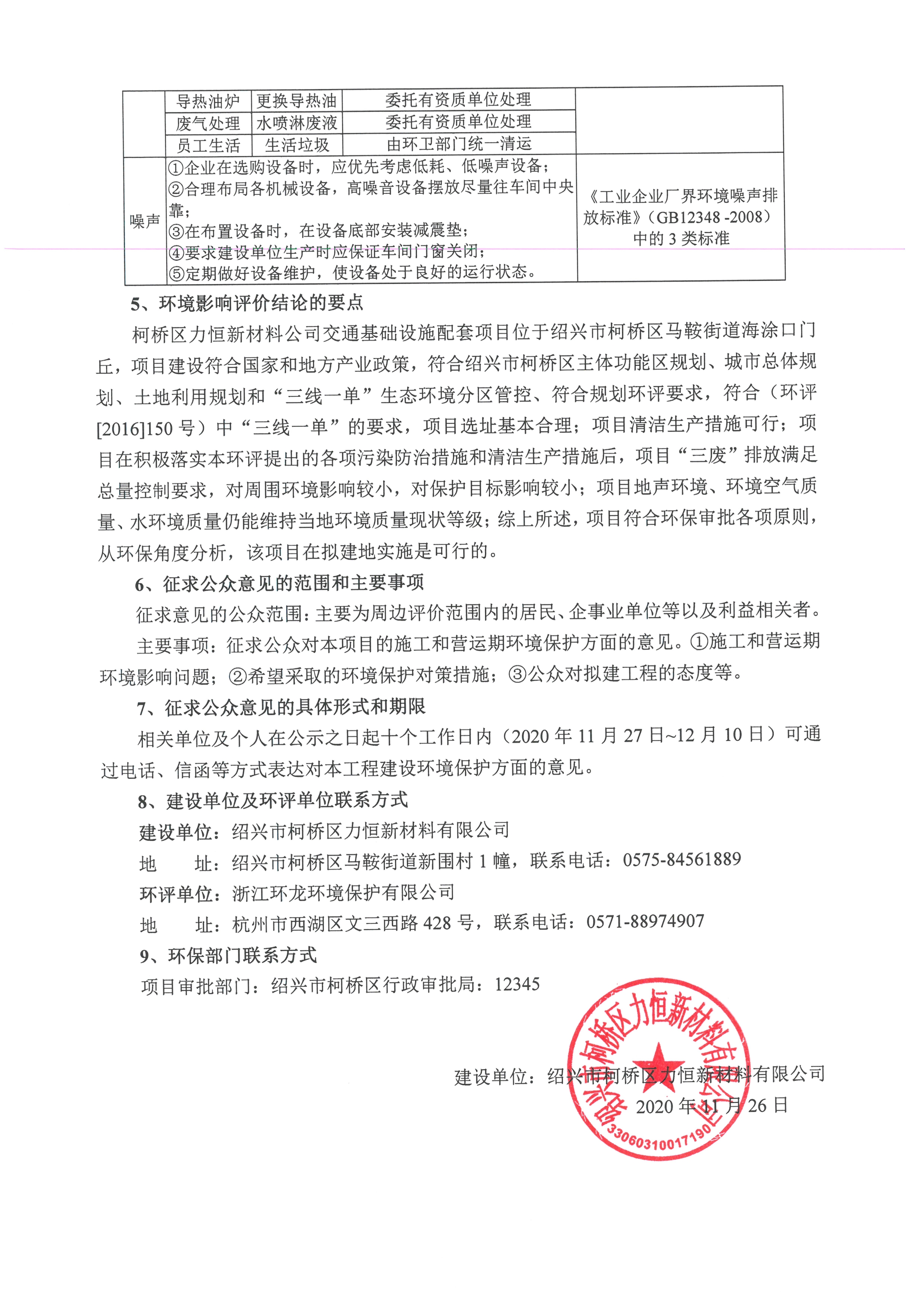 柯橋區(qū)力恒新材料公司交通基礎設施配套項目環(huán)境影響評價信息公示